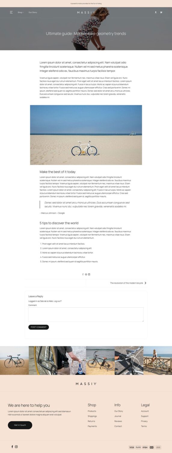 Massiv theme exceeded my expectations in every aspect. Its user-friendly interface made customization a breeze. Diverse and well-designed templates provided ample options for a unique look. Responsive design ensured a flawless appearance across devices. Excellent customer support adds the finishing touch. Highly recommend this theme for reliability and versatility.